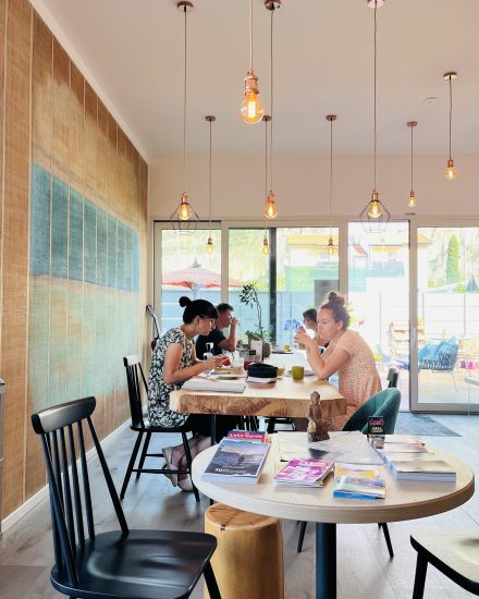 a colazione del Glocal Torbole è sempre pronta alle 8 del mattino e finisce verso le 10:30. Se però capita che devi svegliarti presto o addirittura prestissimo, o che la sera prima hai fatto tardi e altrettanto tardi desideri cappuccino e colazione, conta su di noi! Prima di tutto ogni mattina ci piace darvi il buongiorno con un buon caffè profumato ed intenso, fatto dalla nostra macchina “President-faema” del 1968 che continua ancora ha regalare un espresso magnifico, che servito fumante e profumato è pura energia per le tue giornate.