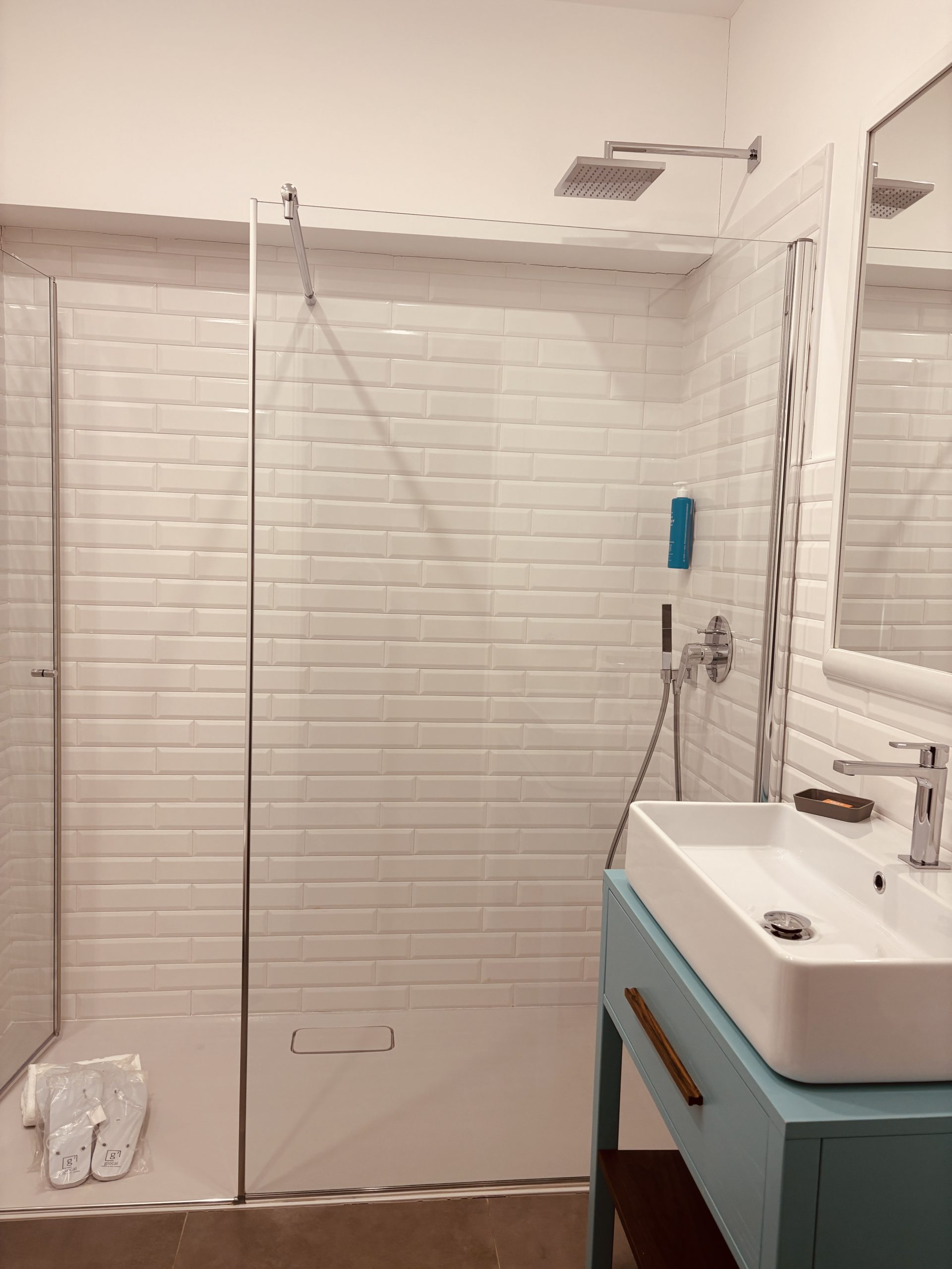Der Balkon ist perfekt, um in Ruhe etwas zu trinken oder die Sonne zu genießen. Sind Sie zu dritt? Dann bereiten wir gerne auch das dritte Bett für Sie vor. Für die ideale Wohlfühltemperatur sorgt unser ökologisches Kühl- und Heizsystem, das konstant etwa 22°C hält. Träumen Sie von einer unvergesslichen Dusche? Dann schauen Sie sich unsere Dusche genau an – Sie werden begeistert sein! Zudem finden Sie einen Haartrockner, einen Laptop-Safe sowie einen Fernseher. Kühlschrank und Wasserkocher stehen Ihnen in der Gemeinschaftsküche zur Verfügung.