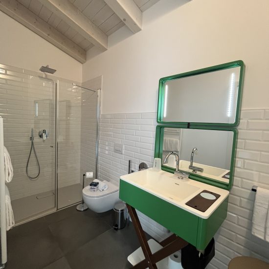 If space is what you’re looking for, this is the perfect room for you. Are you a group of four or even five? No problem at all—by opening the connecting door, you’ll find a bunk bed and an extra bathroom ready for you in the adjacent room. The terrace is a space to truly enjoy: perfect for sunbathing, playing, or having a drink. Our energy-efficient climate control system takes care of the temperature, maintaining a constant, comfortable 22°C. You will also find a hairdryer, a laptop-sized safe, and a TV. A fridge and kettle are available for your use in the shared kitchen.